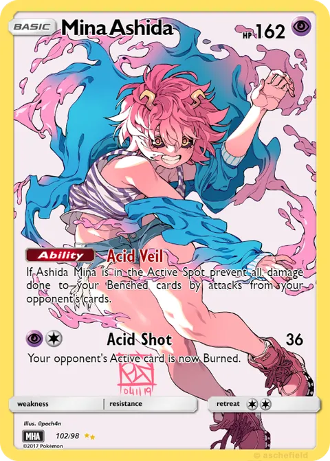 If Ashida Mina is in the Active Spot prevent all damage done to your Benched cards by attacks from your opponent's cards.Acid Shot • 36