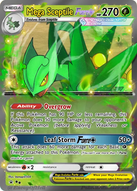 If this Pokémon has 90 HP or less remaining, this Pokémon does 50 more damage to your opponent's Active Pokémon (before applying Weakness or Resistance).Leaf Storm • 50+