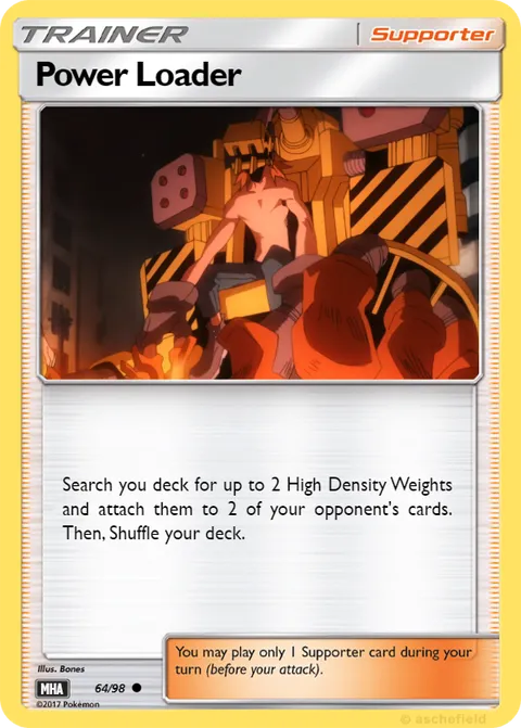 Search you deck for up to 2 High Density Weights and attach them to 2 of your opponent's cards. Then, Shuffle your deck.