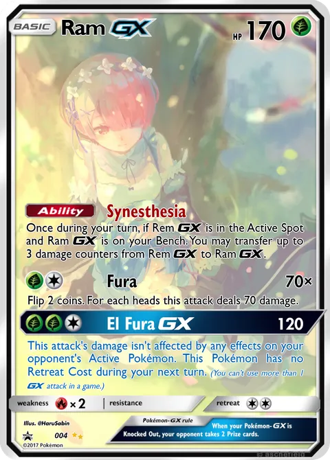 Once during your turn, if Rem X is in the Active Spot and Ram X is on your Bench. You may transfer up to 3 damage counters from Rem X to Ram X.Fura • 70×