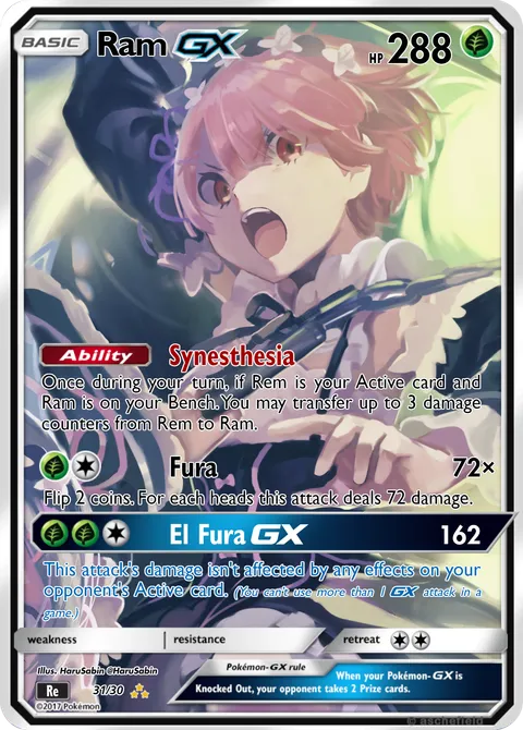 Once during your turn, if Rem is your Active card and Ram is on your Bench. You may transfer up to 3 damage counters from Rem to Ram.Fura • 72×