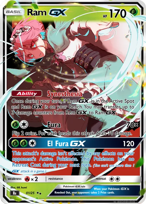 Once during your turn, if Rem X is in the Active Spot and Ram X is on your Bench. You may transfer up to 3 damage counters from Rem X to Ram X.Fura • 70×