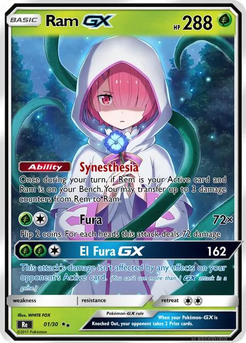 Once during your turn, if Rem is your Active card and Ram is on your Bench. You may transfer up to 3 damage counters from Rem to Ram.Fura • 72×