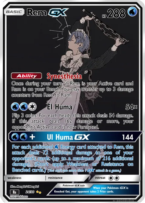 Once during your turn, if Rem is your Active card and Ram is on your Bench. You may transfer up to 3 damage counters from Rem to Ram.