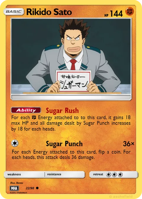 For each F Energy attached to to this card, it gains 18 max HP and all damage dealt by Sugar Punch increases by 18 for each heads.Sugar Punch • 36×