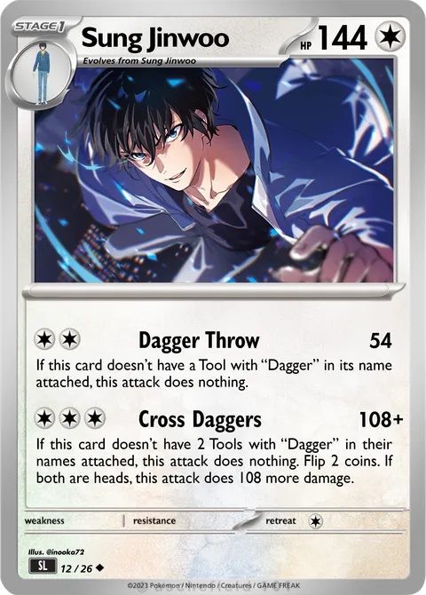 If this card doesn’t have 2 Tools with “Dagger” in their names attached, this attack does nothing. Flip 2 coins. If both are heads, this attack does 108 more damage.