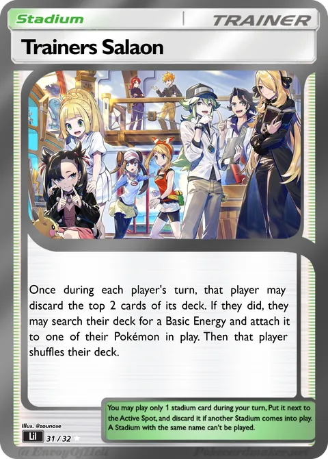 Once during each player's turn, that player may discard the top 2 cards of its deck. If they did, they may search their deck for a Basic Energy and attach it to one of their Pokémon in play. Then that player shuffles their deck.