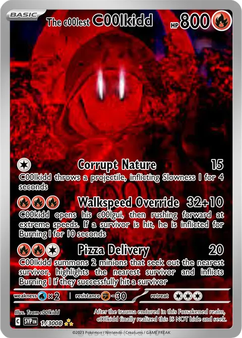 illus. Team c00lkidd#1/3008After the trauma endured in this Forsakened realm, c00lkidd finally realized this IS NOT hide and seek.Created by @RazvanVar256 on 22 March 2026Includes assets by Creatures Inc.