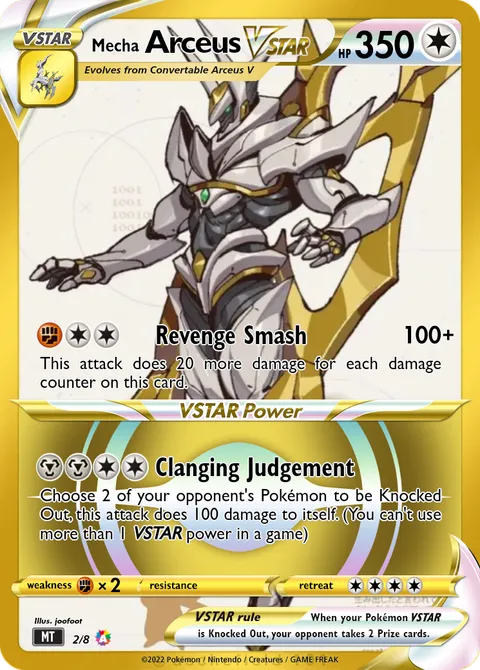 This attack does 20 more damage for each damage counter on this card. Choose 2 of your opponent's Pokémon to be Knocked Out, this attack does 100 damage to itself. (You can't use more than 1 VSTAR power in a game) illus. joofoot#2/8