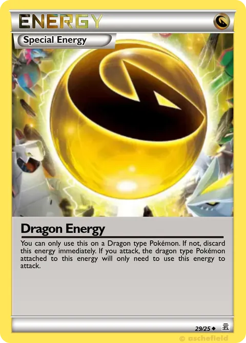 You can only use this on a Dragon type Pokémon. If not, discard this energy immediately. If you attack, the dragon type Pokémon attached to this energy will only need to use this energy to attack.