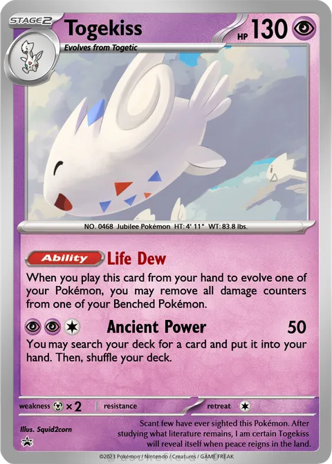 NO. 0468 Jubilee Pokémon HT: 4' 11" WT: 83.8 lbs.illus. Squid2cornScant few have ever sighted this Pokémon. After studying what literature remains, I am certain Togekiss will reveal itself when peace reigns in the land.Created by @Roosey on 18 March 2026Includes assets by Creatures Inc.
