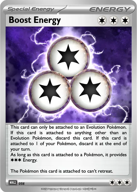 This card can only be attached to an Evolution Pokémon. If this card is attached to anything other than an Evolution Pokémon, discard this card. If this card is attached to 1 of your Pokémon, discard it at the end of your turn. As long as this card is attached to a Pokémon, it provides CCC Energy. The Pokémon this card is attached to can’t retreat.