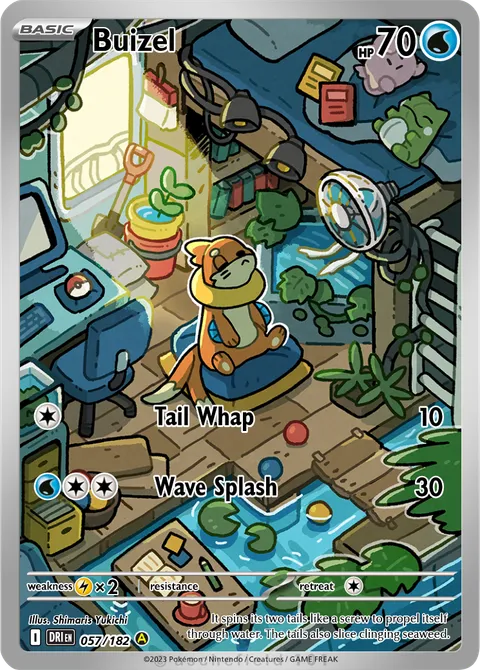 It spins its two tails like a screw to propel itself through water. The tails also slice clinging seaweed.