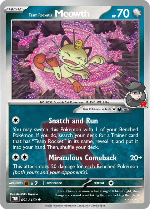 You may switch this Pokémon with 1 of your Benched Pokémon. If you do, search your deck for a Trainer card that has “Team Rocket” in its name, reveal it, and put it into your hand. Then, shuffle your deck.