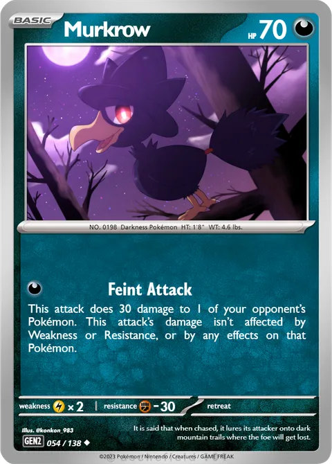 NO. 0198 Darkness Pokémon HT: 1'8" WT: 4.6 lbs.illus. @konkon_983#054/138It is said that when chased, it lures its attacker onto dark mountain trails where the foe will get lost.Created by @Rune_Script on 03 March 2025