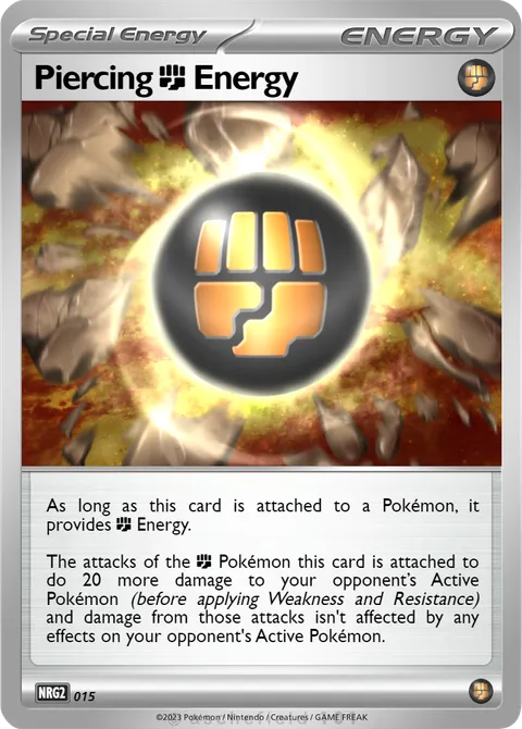 As long as this card is attached to a Pokémon, it provides F Energy. The attacks of the F Pokémon this card is attached to do 20 more damage to your opponent’s Active Pokémon (before applying Weakness and Resistance) and damage from those attacks isn't affected by any effects on your opponent's Active Pokémon.