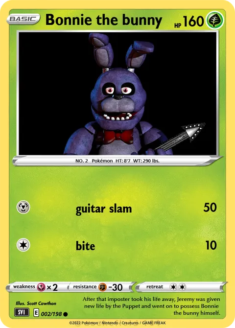 After that imposter took his life away, Jeremy was given new life by the Puppet and went on to possess Bonnie the bunny himself.