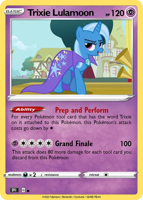 For every Pokémon tool card that has the word Trixie on it attached to this Pokémon, this Pokémon's attack costs go down by CGrand Finale • 100+