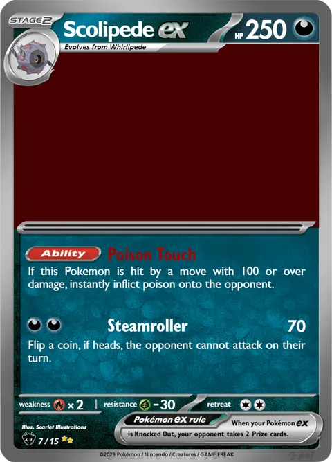 If this Pokemon is hit by a move with 100 or over damage, instantly inflict poison onto the opponent.