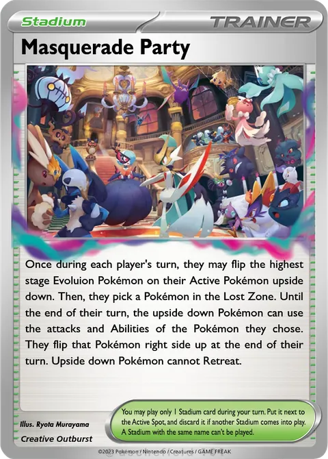 Once during each player's turn, they may flip the highest stage Evoluion Pokémon on their Active Pokémon upside down. Then, they pick a Pokémon in the Lost Zone. Until the end of their turn, the upside down Pokémon can use the attacks and Abilities of the Pokémon they chose. They flip that Pokémon right side up at the end of their turn. Upside down Pokémon cannot Retreat.