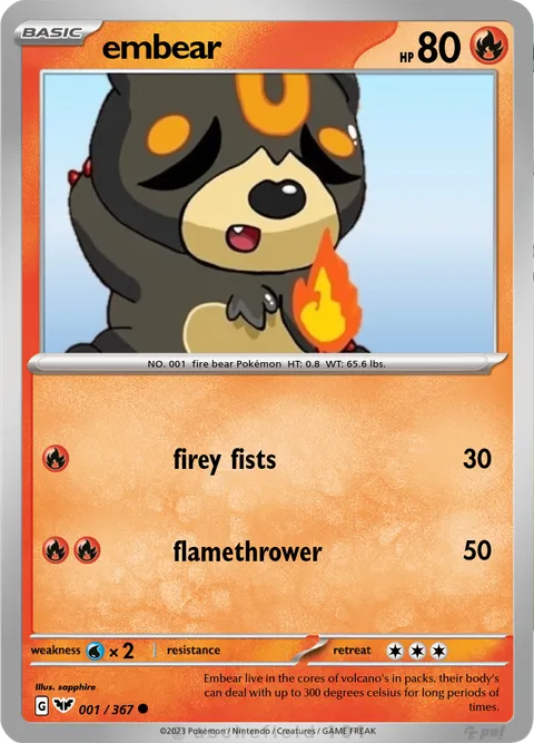 NO. 001 fire bear Pokémon HT: 0.8 WT: 65.6 lbs.