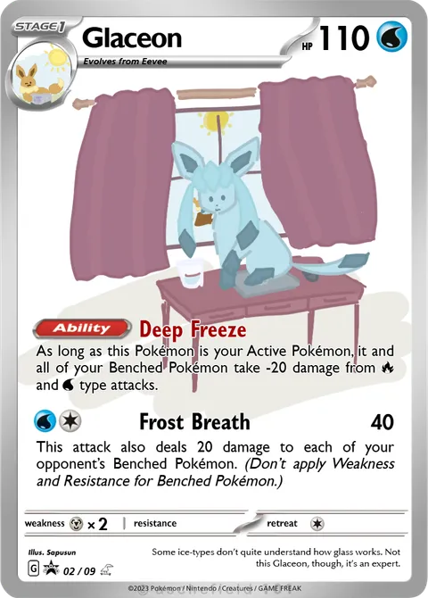 As long as this Pokémon is your Active Pokémon, it and all of your Benched Pokémon take -20 damage from R and W type attacks.Frost Breath • 40