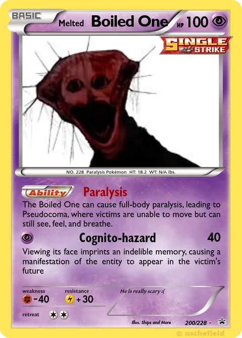 NO. 228 Paralysis Pokémon HT: 18.2 WT: N/A lbs.illus. Ships and More#200/228He is really scary :(Created by @ShipsandMore on 24 September 2025Includes assets by Creatures Inc.