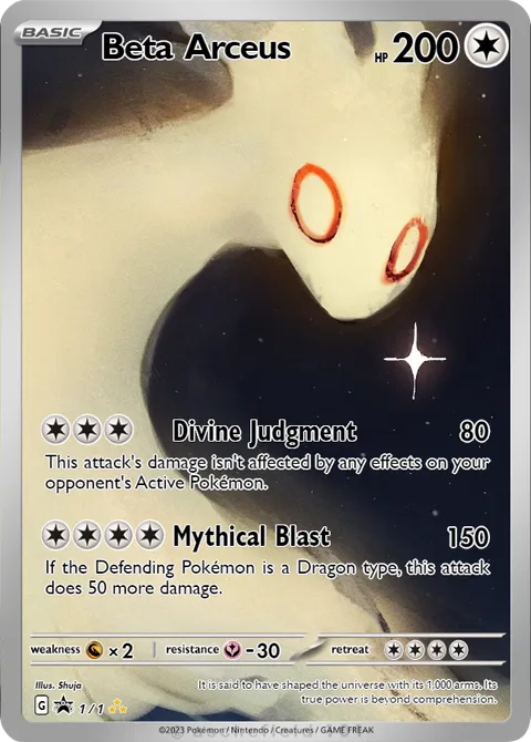 This attack's damage isn't affected by any effects on your opponent's Active Pokémon. If the Defending Pokémon is a Dragon type, this attack does 50 more damage. illus. Shuja#1/1It is said to have shaped the universe with its 1,000 arms. Its true power is beyond comprehension.