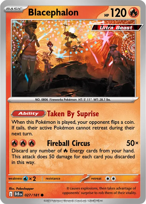 When this Pokémon is played, your opponent flips a coin. If tails, their active Pokémon cannot retreat during their next turn.Fireball Circus • 50×