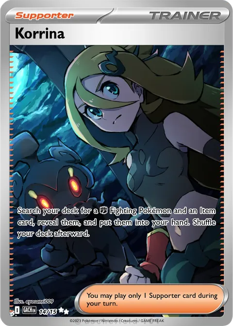 Search your deck for a F Fighting Pokémon and an Item card, reveal them, and put them into your hand. Shuffle your deck afterward.