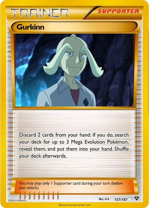 Discard 2 cards from your hand. If you do, search your deck for up to 3 Mega Evolution Pokémon, reveal them, and put them into your hand. Shuffle your deck afterwards.