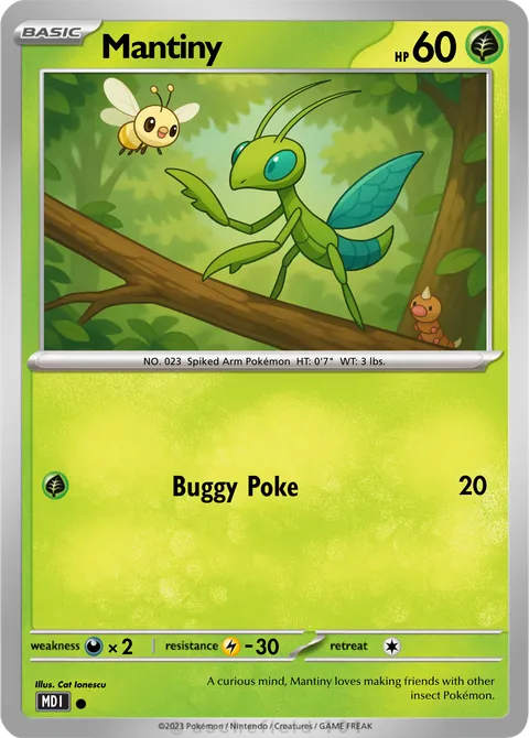 A curious mind, Mantiny loves making friends with other insect Pokémon.