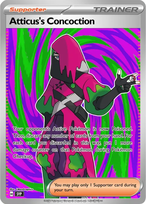 Your opponent's Active Pokémon is now Poisoned. Then, discard any number of cards from your hand. For each card you discarded in this way, put 1 more damage counter on that Pokémon during Pokémon Checkup.