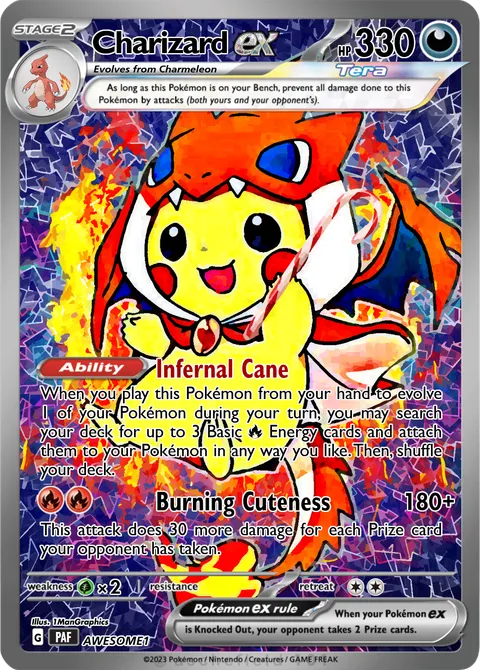 When you play this Pokémon from your hand to evolve 1 of your Pokémon during your turn, you may search your deck for up to 3 Basic R Energy cards and attach them to your Pokémon in any way you like. Then, shuffle your deck.Burning Cuteness • 180+