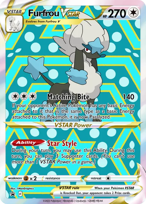 During your turn, you may use this Ability. During this turn, you can play 3 Supporter cards. (You can't use more than 1 VSTAR Power in a game.)Weakness:
