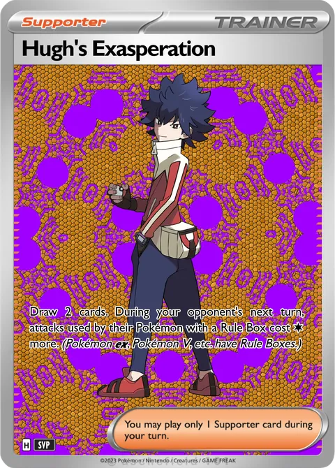 Draw 2 cards. During your opponent's next turn, attacks used by their Pokémon with a Rule Box cost C more. (Pokémon e, Pokémon V, etc. have Rule Boxes.)