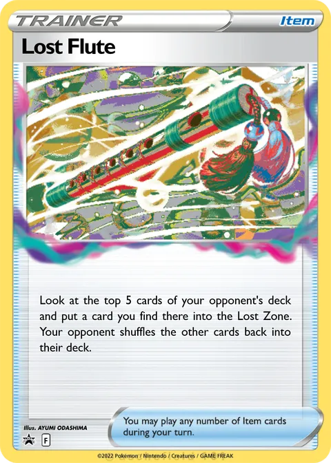 Look at the top 5 cards of your opponent's deck and put a card you find there into the Lost Zone. Your opponent shuffles the other cards back into their deck.