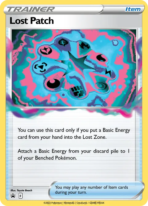 You can use this card only if you put a Basic Energy card from your hand into the Lost Zone. Attach a Basic Energy from your discard pile to 1 of your Benched Pokémon.