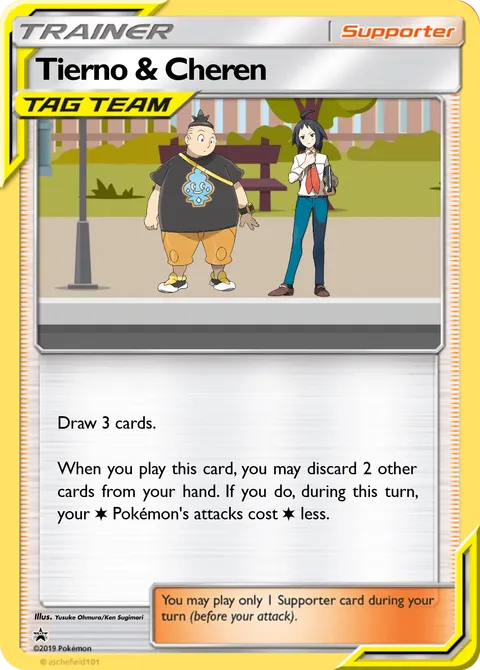 Draw 3 cards. When you play this card, you may discard 2 other cards from your hand. If you do, during this turn, your C Pokémon's attacks cost C less.