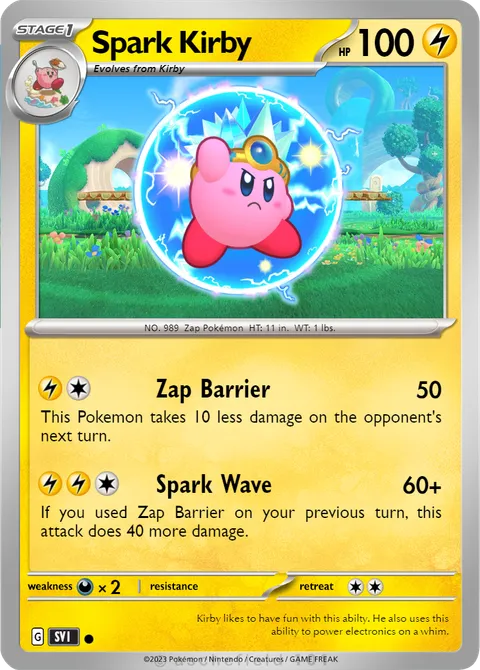 NO. 989 Zap Pokémon HT: 11 in. WT: 1 lbs.Kirby likes to have fun with this abilty. He also uses this ability to power electronics on a whim.Created by @Steve84 on 13 October 2024