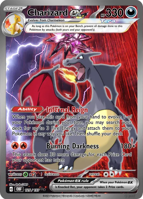When you play this card from your hand to evolve 1 of your Pokémon during your turn, you may search your deck for up to 3 Fire Energy and attach them to your Pokémon in any way you like. Then, shuffle your deckBurning Darkness • 180+