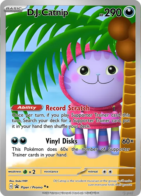 Once per turn, if you play Supporter Trainer card this turn, Search your deck for a Supporter Trainer card, put it in your hand then shuffle your deck.Vinyl Disks • 60×