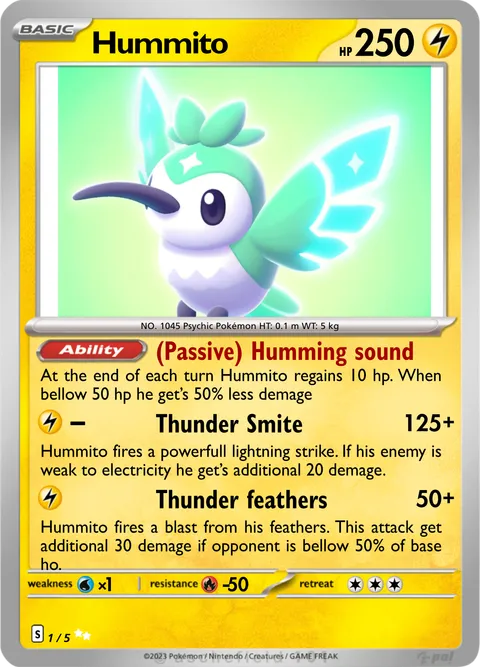 Hummito fires a powerfull lightning strike. If his enemy is weak to electricity he get’s additional 20 demage.
