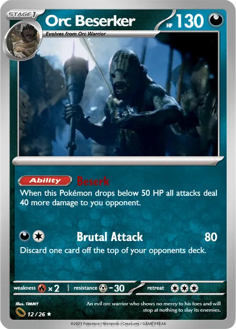 When this Pokémon drops below 50 HP all attacks deal 40 more damage to you opponent.Brutal Attack • 80