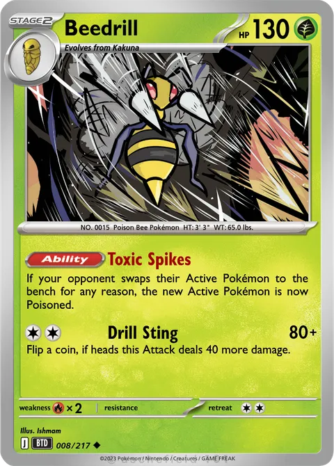 NO. 0015 Poison Bee Pokémon HT: 3' 3" WT: 65.0 lbs.