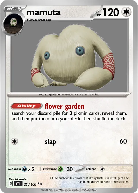 search your discard pile for 3 pikmin cards. reveal them, and then put them into your deck. then, shuffle the deck.slap • 60