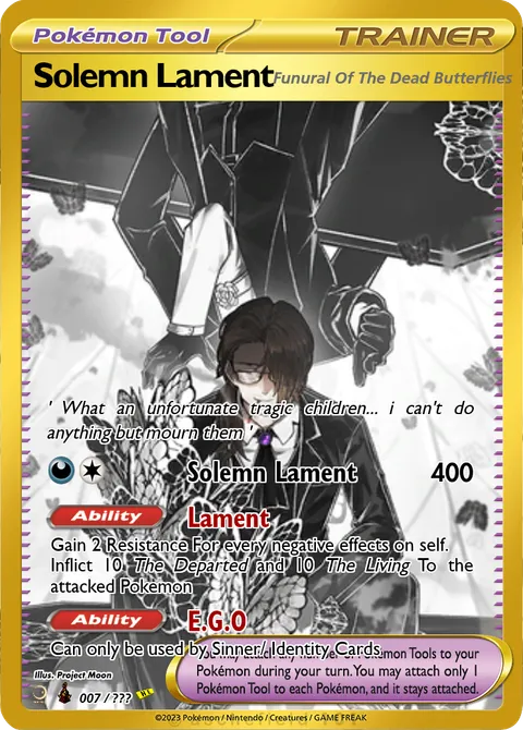 Gain 2 Resistance For every negative effects on self. Inflict 10 The Departed and 10 The Living To the attacked PokemonAbility: E.G.O