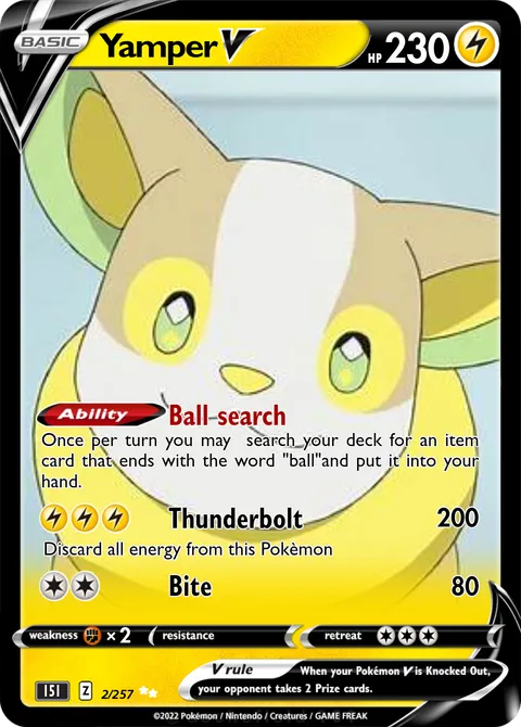Once per turn you may search your deck for an item card that ends with the word "ball"and put it into your hand.Thunderbolt • 200