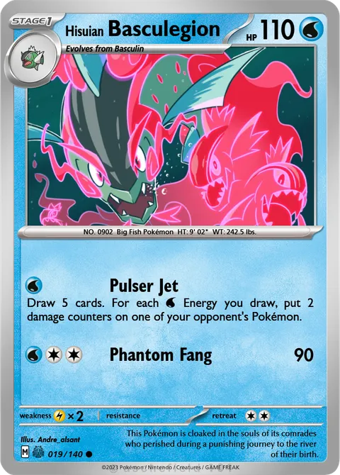 NO. 0902 Big Fish Pokémon HT: 9' 02" WT: 242.5 lbs.illus. Andre_alsant#019/140This Pokémon is cloaked in the souls of its comrades who perished during a punishing journey to the river of their birth.Created by @TheKnight on 22 December 2025
