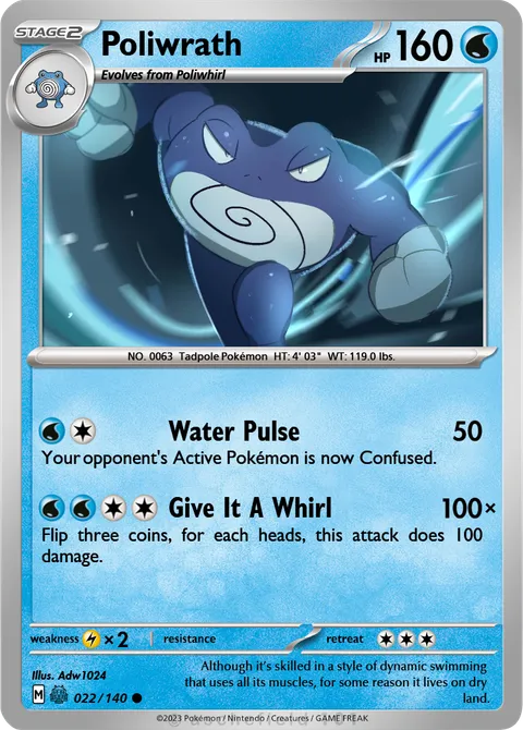 NO. 0063 Tadpole Pokémon HT: 4' 03" WT: 119.0 lbs.illus. Adw1024#022/140Although it’s skilled in a style of dynamic swimming that uses all its muscles, for some reason it lives on dry land.Created by @TheKnight on 23 December 2025